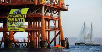 gli attivisti di Greenpeace protestano in maniera pacifica e non violenta presso la piattaforma di estrazione di idrocarburi Prezioso di ENI Mediterranea Idrocarburi, nel Canale di Sicilia, al largo della costa di Licata (Agrigento). Con l’appoggio della nave Rainbow Warrior, a bordo di gommoni, una decina di attivisti ha scalato la piattaforma aprendo Continua...